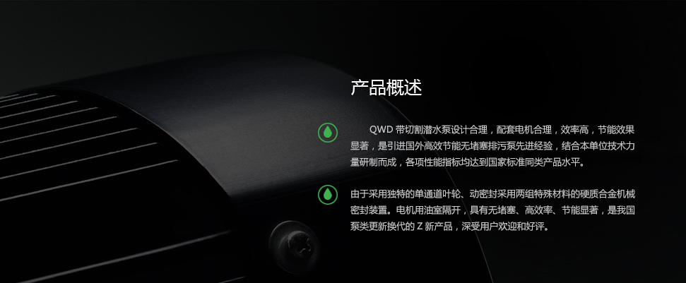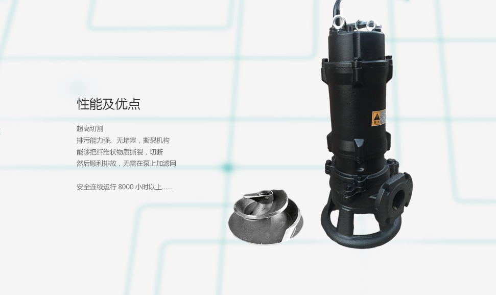 QWD帶切割潛水泵適用于工廠商業嚴重污染廢水的排放、住宅區的污水排污站、城市污水處理廠排水系統、人防系統排水站、自來水廠的結水裝置,醫院、賓館的污水排放、市政工程建筑工地、勘探、礦山配套附機、農村沼氣池、農田灌溉等行業,輸送帶顆粒的污水、污物,也可用于清水及帶腐蝕性介質。