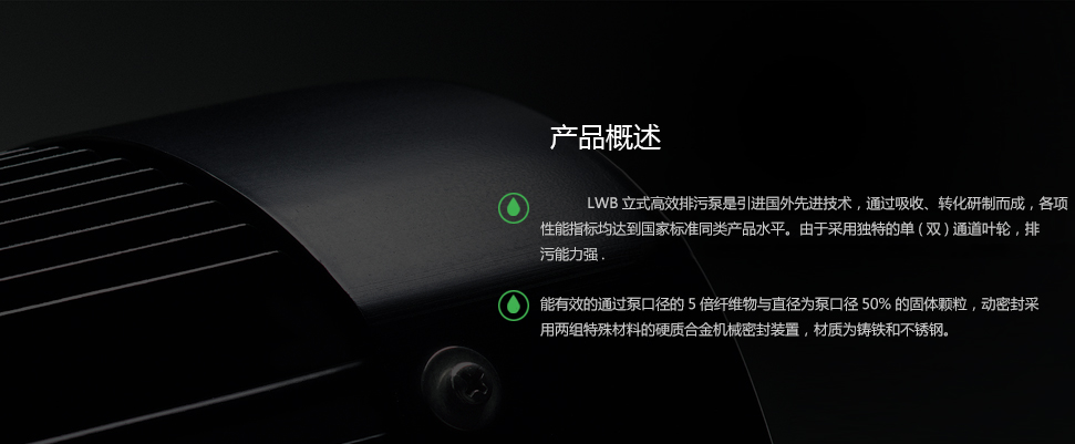 泵的特性:1.污水:無腐蝕性的污水 2.污水:腐蝕性的污水 3.污水:長纖維雜質液體 4.污水:含有沉淀物的污水 5.污水:含有泥、沙的廢水 6.污水:其它有雜質的液體